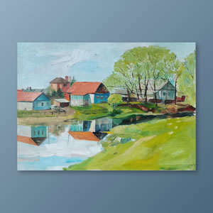 贯穿画幅的水中倒影,构建静谧和谐的乡村风景。